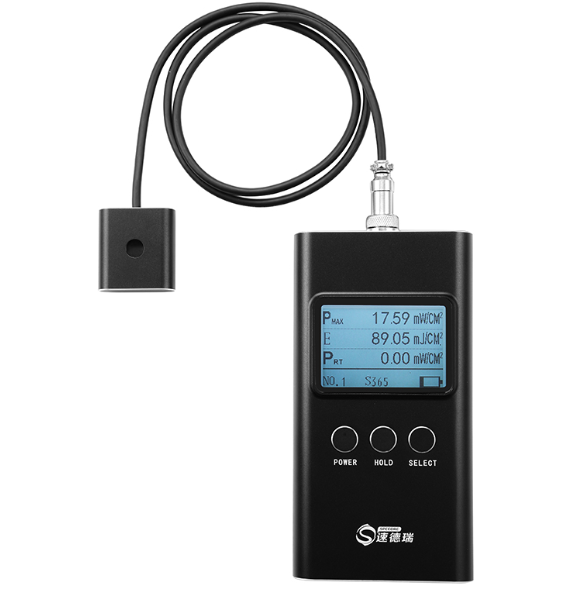 速德瑞科技根据不同波长的紫外线,均设计有代表性的检查产品,比如这款UV能量辐照记录仪SDR-UVA ,能在100度高温下长时间工作,并且能同时显示功率实时值、功率累加值、能量值及测量时长和温度。连接电脑软件,可导出测试数据,打印测试报告。