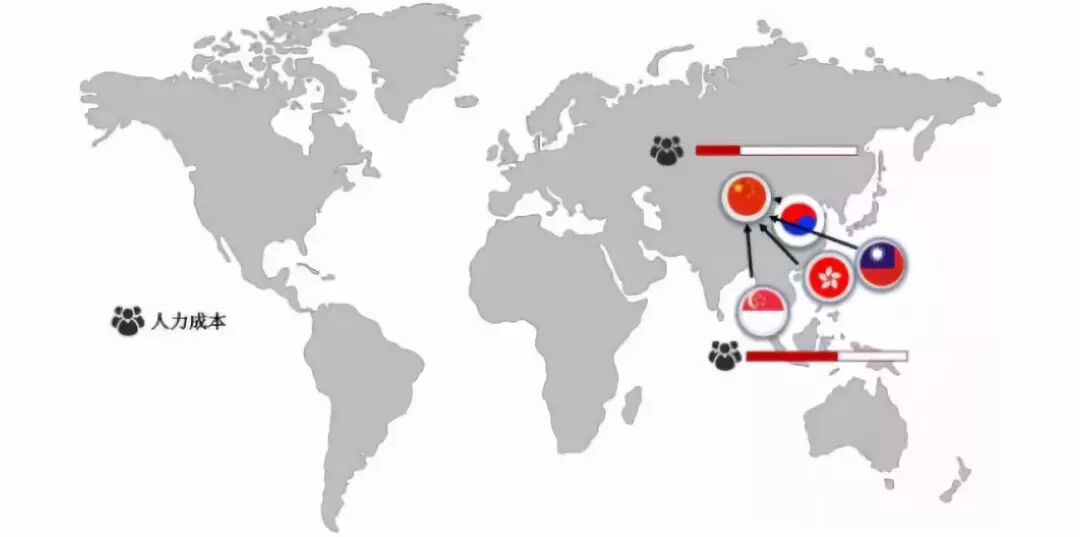 台湾在60年代美苏冷战时期是美国制约亚洲的前线,在其经济援助下大力发展工业,70年代中期,台湾承接了美日相当一部分劳动密集型的产业,逐渐成为电子代工业的巨头;