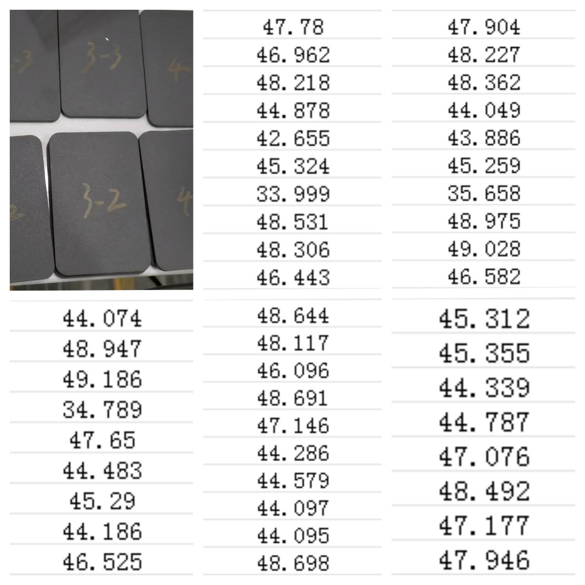 由以上结果可知道:样品的材料不太均匀,大部分位置的透过率在40%以上,有少部分位置的数据偏低,在35%以下。
